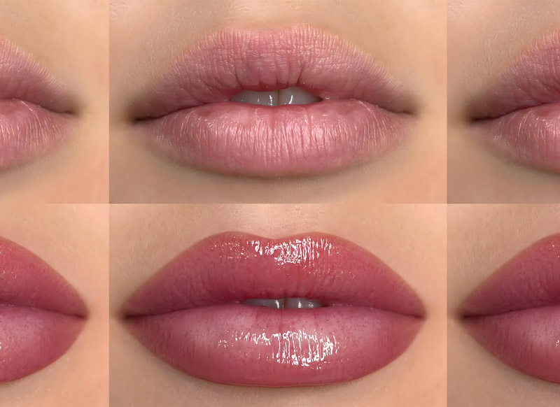 There are also traditional lip tattooing techniques available that aim for deeper colour saturation and longer lasting effects compared to lip blushing. Lip lines can be defined with degrees of blending or fully coloured to even out pale or patchy lips without the need for lipstick.